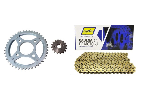 Consultar sobre KIT PIÑON Y CORONA con CADENA MOTOS HELLUX HONDA CG 150 TITAN - NEW TITAN 150 - GLH 150 428H- 118 GOLD